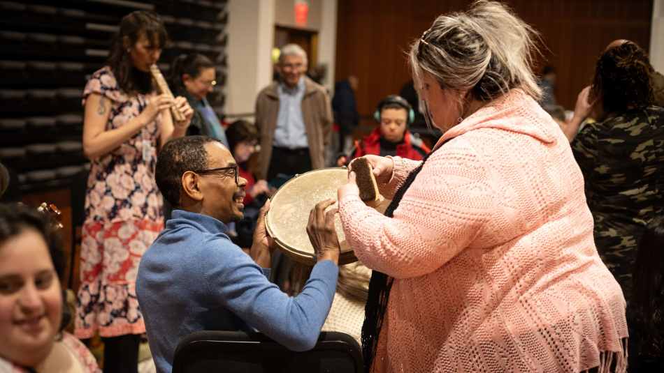 Many events include pre-concert activities: get up close to the music by experimenting with a violin or trumpet, hearing what sounds you can make on the strings, or seeing how your breath brings a brass instrument to life. Get busy with your hands at an art station, or write an orchestra member a letter and place it in our big blue mailbox. Dance with colorful scarves or meet new friends from organizations onsite offering additional support resources.